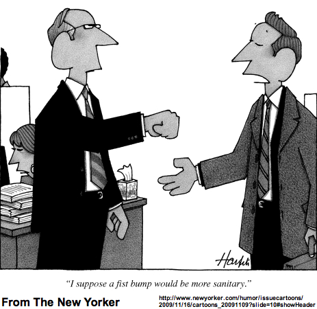 “The handshake is thought by some to have originated as a gesture of peace by demonstrating that the hand holds no weapon.”